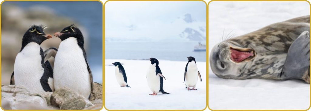 Wildlife Encounters – See gentoo, chinstrap, and Adélie penguins at close range, along with seals resting on the ice and whales feeding in polar waters during the summer months.